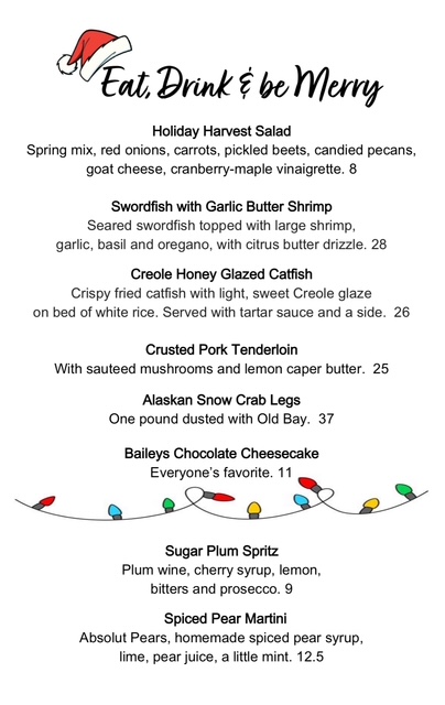 Join us for seafood, steaks, sandwiches, salads, burgers, wraps and more! We also have a Gluten Free menu with over 34 choices, 24 entrees under $20 ALL utilizing our own recipes - even down to the seasoning!